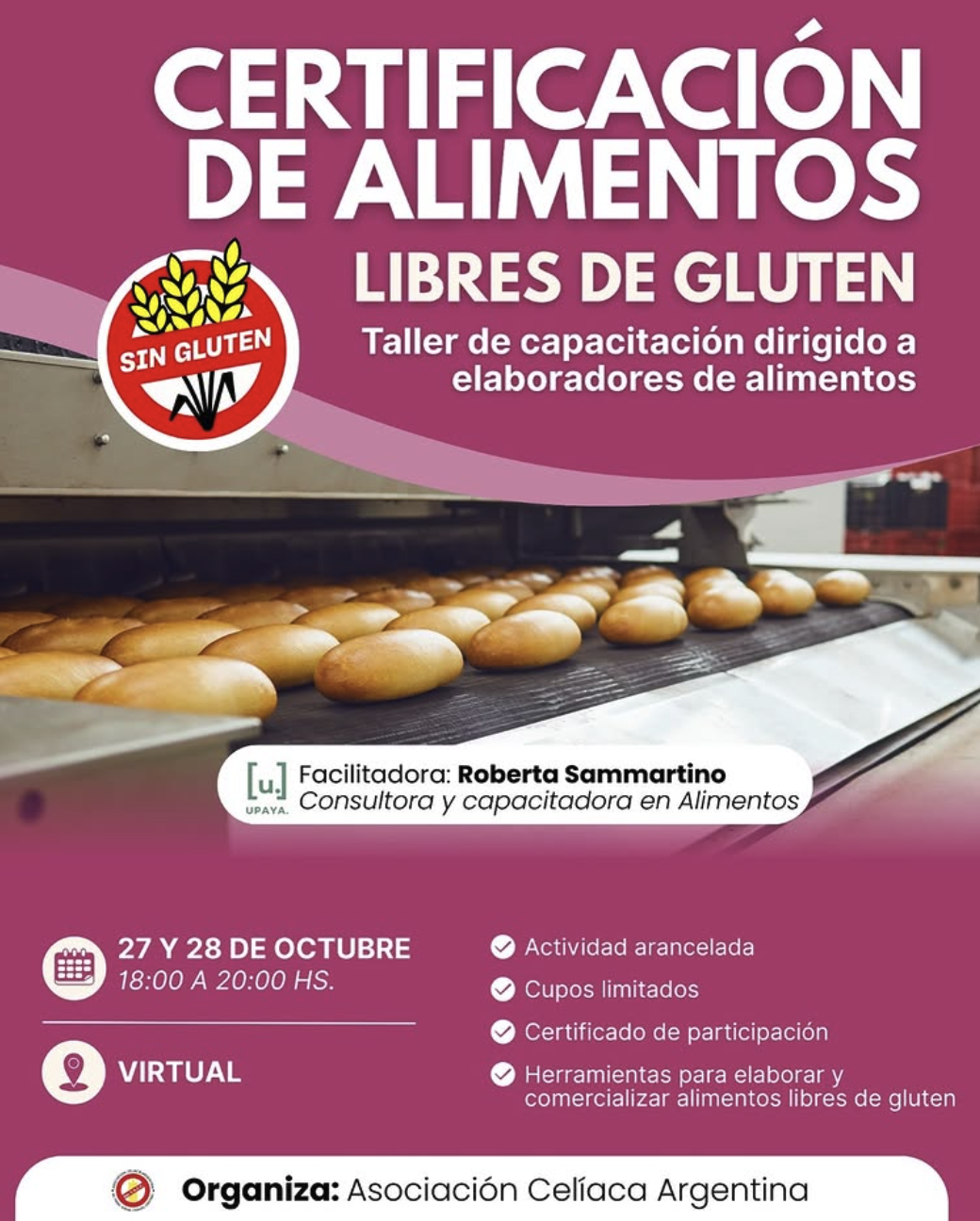 Te invitamos a participar del taller de capacitación virtual sobre Certificación de Alimentos Libres de Gluten, pensado para elaboradores que buscan elaborar y comercializar productos Libres de gluten de manera segura.