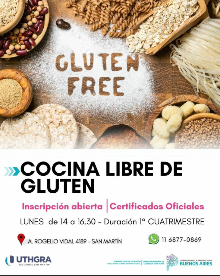 La seccional San Martín de la UTHGRA anunció el inicio de un nuevo curso de Cocina Libre de Gluten, una propuesta de formación con certificación oficial que comenzará el próximo 16 de marzo a las 14 horas en su sede ubicada en A. Rogelio Vidal 4189.