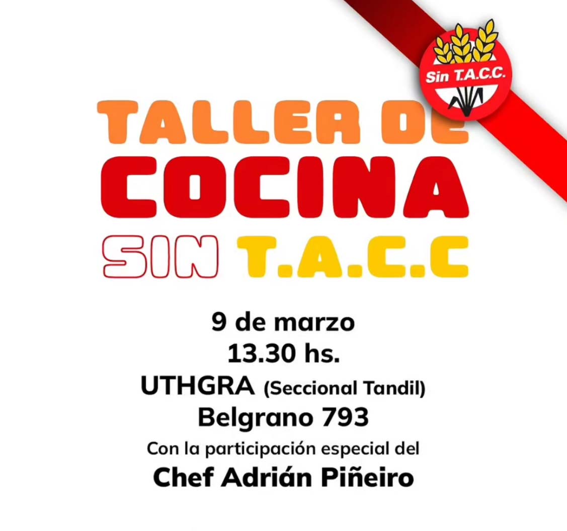 La filial Tandil de la Asociación Celíaca Argentina organiza un nuevo taller de cocina sin TACC con la participación especial del chef Adrián Piñeiro.