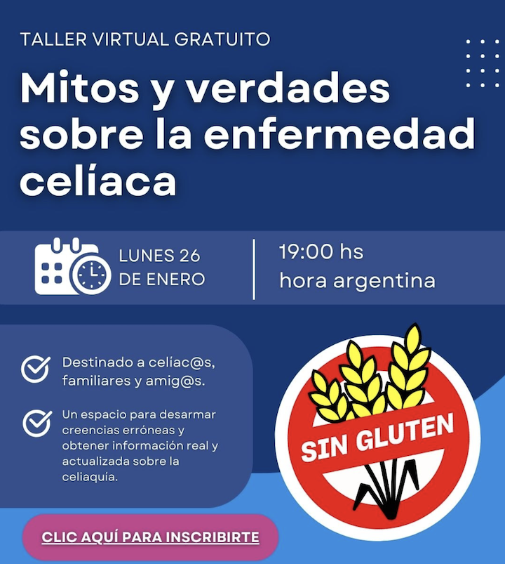Te invitamos a participar del taller virtual gratuito “Mitos y verdades sobre la enfermedad celíaca”, un espacio abierto para aprender, informarse y despejar dudas.