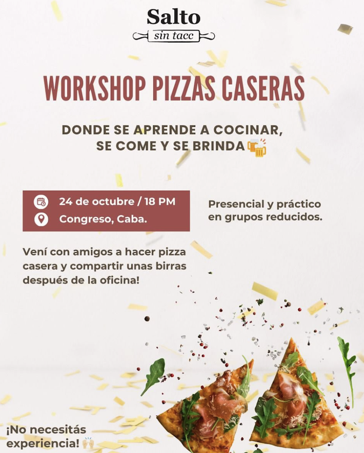 Workshop de Pizzas Caseras: Ideal para venir con amigos, amasar juntos, aprender y cerrar la jornada con unas birras y mucha pizza. De la mano de Salto sin TACC.