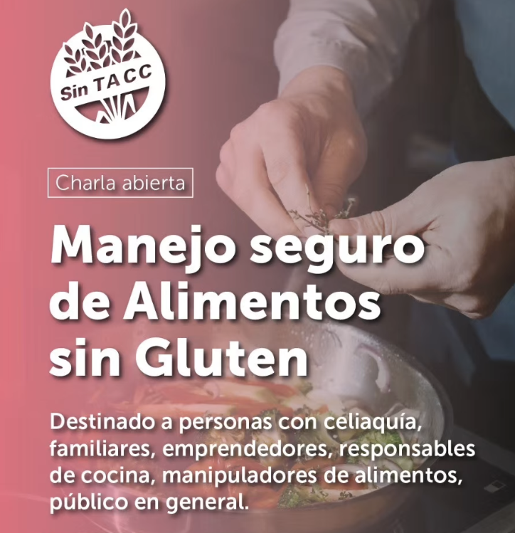 Charla abierta destinada a personas con celiaquía, familiares, emprendedores, responsables de cocina, manipuladore de alimentos, público en general.